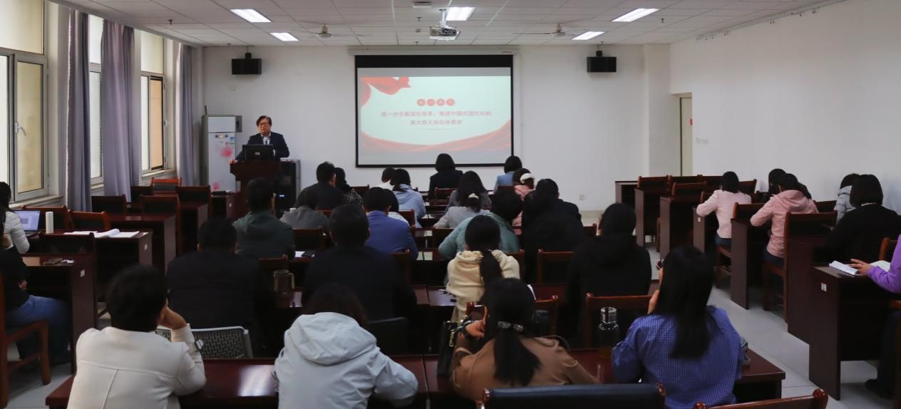 为深刻理解二十届三中全会内涵,贯彻落实工作,10月23日下午,学院党委书记季竹君为全院教职工作党的二十届三中全会精神宣讲报告,强调要深入学习领会党的二十届三中全会精神,以更高站位、更大力度、更实举措进一步深化教育综合改革,把进一步全面深化改革的指导精神转化为推进学院各方面发展的强大力量。