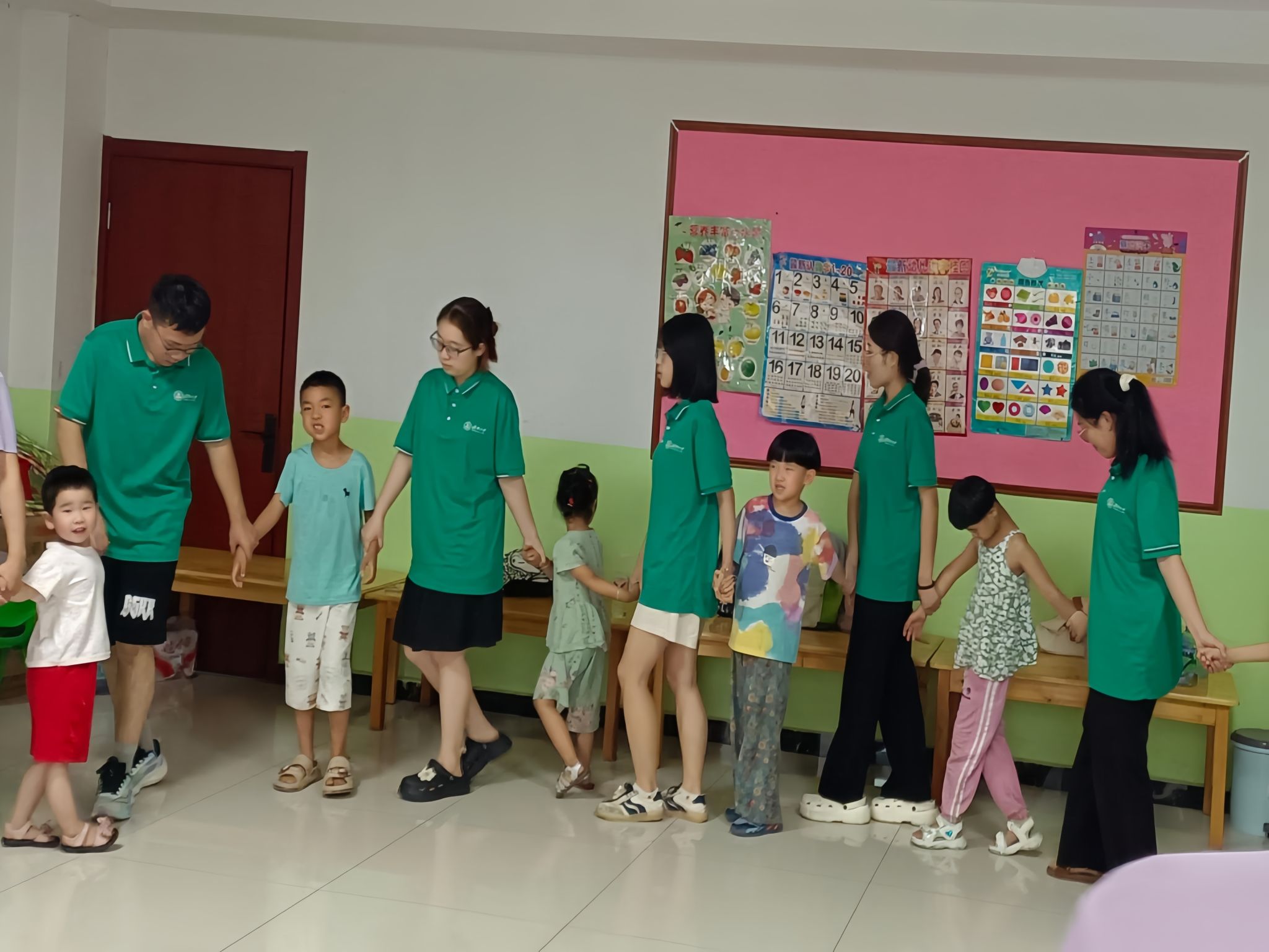 座谈会结束后,实践团成员在机构老师的安排下,在各个班级与特殊儿童进行课程互动。课程内容多种多样,包括一对一辅导特殊儿童进行识字训练与搭积木练习,图文并茂教导孩子们进行识物训练,在感统教室辅助孩子们进行运动训练,带领孩子们在音乐声中进行运动等等。在此次实践过程中,成员们纷纷表示,自己进一步了解到当前融合教育发展的状况,并促进了个人专业技能与实践的融合,自身的专业技能得到了磨练。