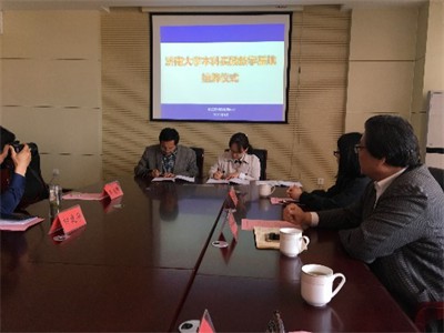 挂牌仪式由泰安市特殊教育中心副校长褚文静主持,首先对我校一行人的的到来表示了热烈的欢迎,并对接下来的合作满怀期许。随后,泰安市特殊教育中心校长高理敬介绍了学校“美丽特教”的治学思想,并表示本次本科实践教学基地的落成,是两校长久以来良好合作的硕果。36365线路官网党委副书记、副院长季竹君深受高校长满怀特教情怀讲话的触动,他表示在与泰安市特殊教育中心的继续合作中感受到了更多的责任与使命感,对特教中心长久以来的支持表示感谢。希望借助36365线路检测登录入口已有的资源与平台,发挥学科优势与特色,集两校之力更好地为特殊儿童发展服务、为本科人才培养提供基础。之后,双方领导共同签署本科实践教学基地合作协议,并为基地落成揭牌,由此标志着泰安市特殊教育中心正式成为我校本科实践教学基地。