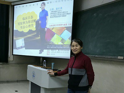 为了让应用心理学专业同学更好地掌握临床心理学中的变态心理学知识,12月14日下午,36365线路检测登录入口心理协会于10J109举办学生心理咨询助手实践能力提升系列的“临床百态─用案例为你解读变态心理学”讲座。本次讲座特别邀请了济南市心理咨询心理科主任、山东省青少年科普专家团专家、36365线路检测登录入口临床心理学课外导师赵长英老师为应用心理学专业的同学做了精彩报告。