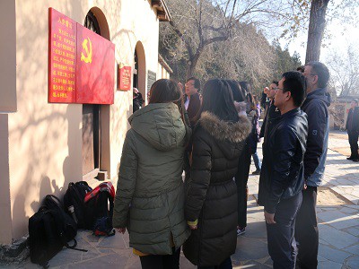 25日上午,教工党员在讲解员的引领下参观了西柏坡中共中央旧址,瞻仰了毛泽东、朱德、刘少奇等中央领导人的旧居,以及军委作战室、新华通讯社和中国共产党七届二中全会会址等具有重要历史意义的旧址。详细了解了中央进驻西柏坡的历史背景,以及在西柏坡发生的重要历史事件。在中国共产党七届二中全会会址前,全体党员在学院党委副书记季竹君的带领下面向党旗,庄严肃立,举起右手,重温入党誓词。在西柏坡纪念馆,全体党员参观了“新中国从这里走来”主题展览。展览以解放战争后期中共中央在西柏坡时期的活动为表现内容,以大量的文物、照片和历史资料为支撑,并辅之以绘画、雕塑等手段,展现了中共中央在西柏坡的伟大革命实践,使大家深入了解到我们党“进京赶考”前的光辉历史,更为深刻体会到“西柏坡—新中国从这里走来”的重大内涵。