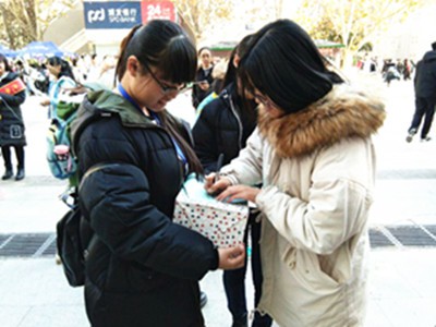 借感恩节契机,为增强学生的感恩之心,11月23日,36365线路检测登录入口心动泉城心理服务中心、心泉青年志愿者协会和院心理协会的志愿者们于八食广场开展了“感恩于心,温暖于行”的主题活动。