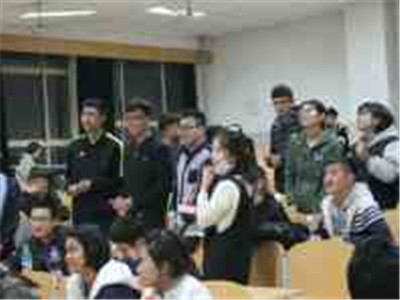 活动伊始,冯晶老师以其幽默风趣的语言和周密独到的见解激起了在座学生的极大热情。冯晶老师将心理哲学寓于轻松诙谐的语言当中,使在座学生在放松之余深切地体会到心理的独特魅力。随后,学生们进行踩气球游戏,上场的学生们在有趣的游戏中放松自我的同时,也意识到了与伙伴合作的重要性。游戏过后,由游戏胜出的小组学生进行有奖问答,学生们思维敏捷,斗志高昂,准确而自信的回答赢得了一致喝彩。下一个环节是学生通过肢体动作或相关语言向小队同学传递信息。上场学生以其敏捷的动作与灵活的思考成功答出问题,博得了一阵热烈的掌声。活动期间,学生们向冯晶老师送上了一份惊喜礼物,表达了对老师的热爱与敬仰。培训活动在愉悦的氛围中圆满结束。