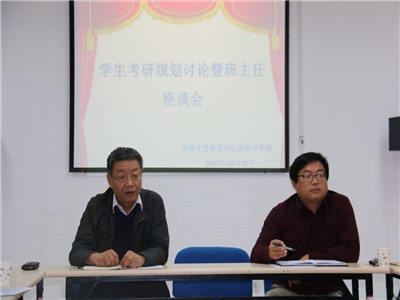 为了加强学风建设,提高学生可持续学习的意识和能力。10月10日下午,36365线路检测登录入口于特教大楼A301召开考研规划讨论会暨班主任座谈会。党委书记王希普,党委副书记季竹君出席,全体学工人员及14-17级全体班主任参加。