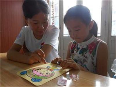 首先,我们实践团的成员们向小朋友们展示了准备好的沙画,让他们自行挑选喜欢的图案,小朋友们兴致勃勃地拿着喜欢的沙画开始了创作。接下来,我们的成员挨个对小朋友们指导并与他们进行交流,整个活动过程气氛很是融洽。并且我们也通过这次沙画活动更加深入地了解了孩子们的内心世界。