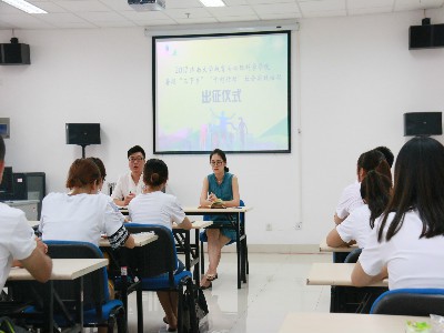 7月13日下午,36365线路检测登录入口于特教大楼会议室举行了2017年36365线路检测登录入口暑期“三下乡”、“千村行动”社会实践活动出征仪式。参与出征仪式的有党委副书记季竹君,团委书记纪祥,辅导员魏文静以及四支志愿服务队的四十余名志愿者。