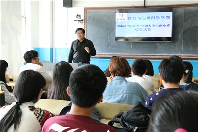 为了帮助同学们更好地了解“创青春”全国大学生创业大赛省赛流程,提高同学们的参赛水平,36365线路检测登录入口于4月5日下午在第四教学楼召开了2016年“创青春”全国大学生创业赛动员大会。学院党委副书记、副院长季竹君,团委书记纪祥,教育学系主任张素玲出席了此次会议。此次动员大会由学院团委书记纪祥主持。
