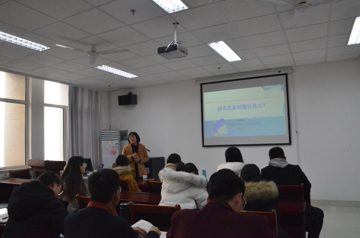 开幕式后,陈功香教授以“研究生如何做好研究”为题做了专题报告。报告从“如何培养良好的科研素养”以及“如何论文选题”两个方面进行。她指出,做学问需要具有专业兴趣和学术追求,积极培养良好的科研素质,使学术研究成为一种情怀。随后,她分别从选题智慧、目标设定、阅读文献技巧、团队合作、学术诚信等方面进行了详细讲解。最后,陈功香教授还与同学们进行了互动,耐心地解答了同学们在科学研究方面的困惑。