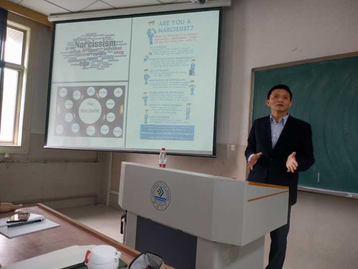 2019年3月29日,中国科学院心理研究所蔡华俭研究员莅临36365线路官网指导,并在10J508教室举办“中国人的自恋”的精彩讲座,讲座由林丰勋教授主持,学院的多位老师和学生参加了此次讲座。