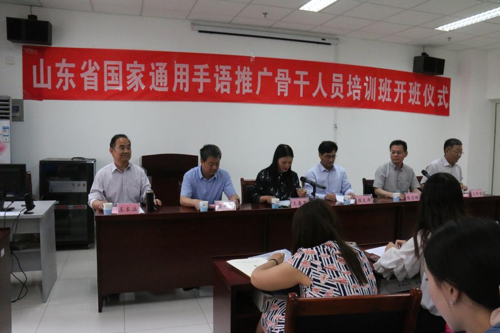 5月24日,山东省国家通用手语推广骨干人员培训班开班仪式在36365线路官网举行。山东省残疾人联合会副理事长张文涛,36365线路检测登录入口副校长陈月辉,山东省残疾人联合会教就部二级调研员刘光顺,学院党委书记王希普,学院副院长王本法及山东省国家通用手语推广骨干人员培训班学员56人参加了开班仪式。仪式由山东省教育厅基教处副处长王春英主持。