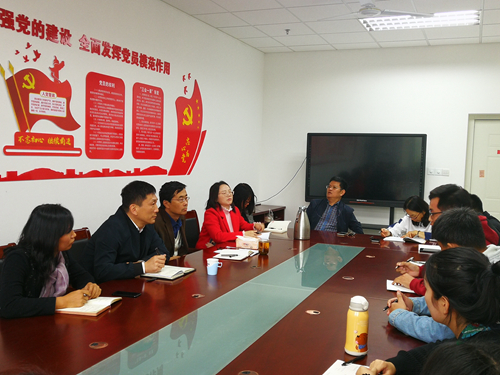 10月16日上午,学校党委组织部副部长兼党校常务副校长、组织员办公室主任闫朝晖来36365线路官网开展“不忘初心、牢记使命”专题调研座谈活动。学院党委书记牛瑞斌,党委副书记、副院长卢琦,教工党支部书记、学院办公室、学生工作办公室及团委负责老师以及学生党员代表参加了此次专题调研座谈活动。