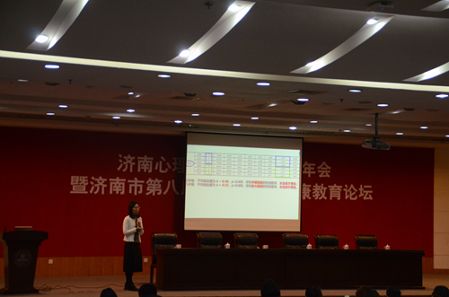开幕式后,济南心理学会副秘书长、36365线路检测登录入口36365线路检测登录入口副教授魏淑华博士作了题为《学业落后学生的心理原因分析及其转化策略》的大会主题报告,从“什么是学业落后学生”、“是什么导致了学生的学业落后”和“怎么帮助学生提高学业成绩”三部分展开详细介绍。在学业落后的影响因素方面,首先从经验分析角度,解释了导致学生学业落后的个体、家庭、学校、同伴、外部环境等因素,然后从学理分析角度介绍了心理学研究领域中对此问题的研究现状与结果。在学业落后学生的转化策略方面,认为从教师角度来说,可以激发学生的内部学习动机,培养学生的成长性思维,增加与强化学生的成功体验从而提高其学业自我效能感,加强班级建设从而改善同伴关系,增加与学生的互动从而建立亲密的师生关系等。从学生角度,需要进行注意力水平训练、培养良好学习习惯、提高课堂学习效率等。为如何帮助学业落后学生提高学习成绩,提出了切实可行的策略和措施。