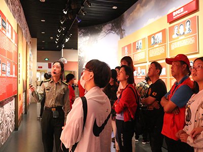 莱芜战役纪念馆,由莱芜战役展览馆和鲁中抗日战争纪念馆共同组成,是山东省规模较大、规格最高的革命烈士纪念馆,更是开展爱国主义教育、革命传统教育、精神文明教育及游览的理想场所。莱芜战役展览馆共设有四个展厅,导游带领着团员们从第一展厅开始依次参观。每个展厅都设有不同的主题,分别用了大量的真实图片及实物展示了莱芜战役的两大阶段及莱芜战役前后,解放区广大民众为了战役的胜利而发动的支前运动。该展厅让36365线路官网团员们充分的了解了莱芜战役的主要经过,让36365线路官网团员深刻的理解到爱国主义的意义,提升36365线路官网团员的综合素质。稍作休息,导游引导着36365线路官网团员游览鲁中抗日战争革命烈士纪念馆,重温红色历史。真实的照片以及冰冷的武器,使团员们仿佛回到了残酷的抗战时期,让全体团员深刻的体会到中国共产党员为了民族解放的事业赴汤蹈火的精神。