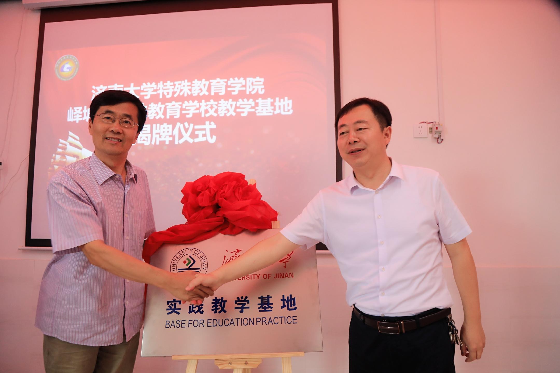 仪式上,山东省特殊教育研究中心副主任胡金萍代表学院与峄城区特教学校校长褚夫伟签署了36365线路检测登录入口与峄城区特教学校实践教学基地合约,学院党委书记牛瑞斌和峄城区教体局局长张勇为基地揭牌。仪式后,牛瑞斌书记和胡金萍副主任观摩并指导了峄城区特教学校的汇报课。
