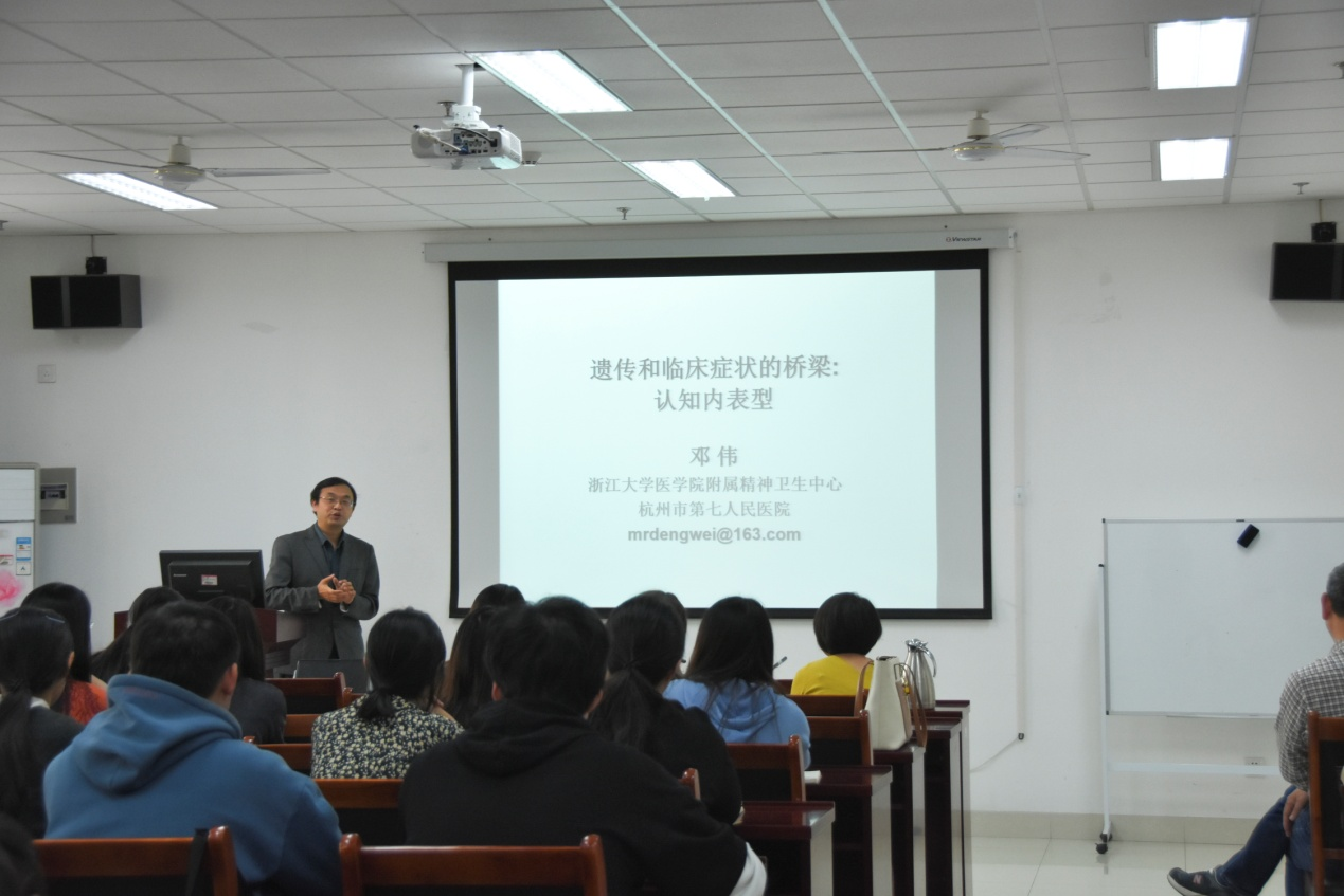 10月13日下午,浙江大学医学院附属精神卫生中心主任医师邓伟教授来我校36365线路检测登录入口交流指导,在特教大楼A302会议室接受研究生指导教师聘请并作学术报告。研究生院副院长仲倩及部分心理专业教师及研究生参加了此次活动。报告会由教心学院副院长陈功香主持。