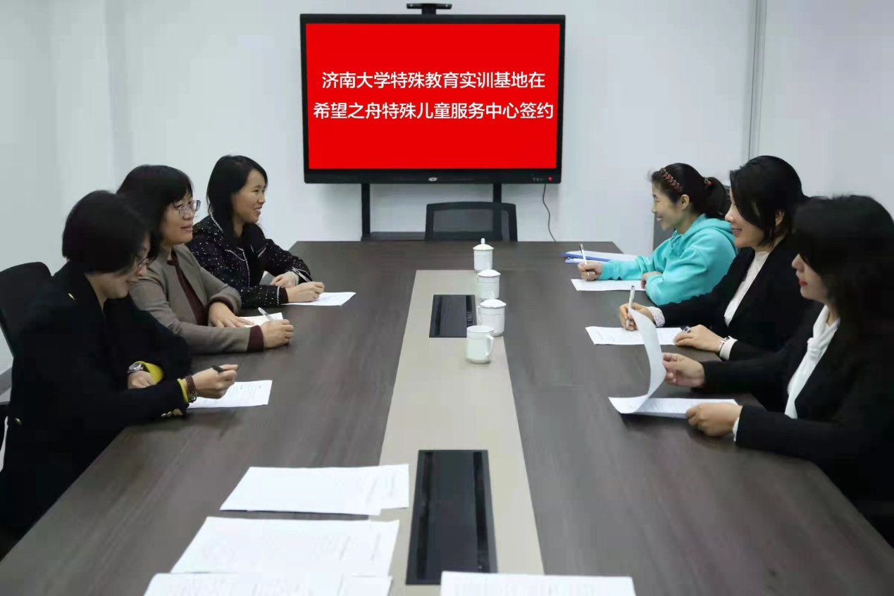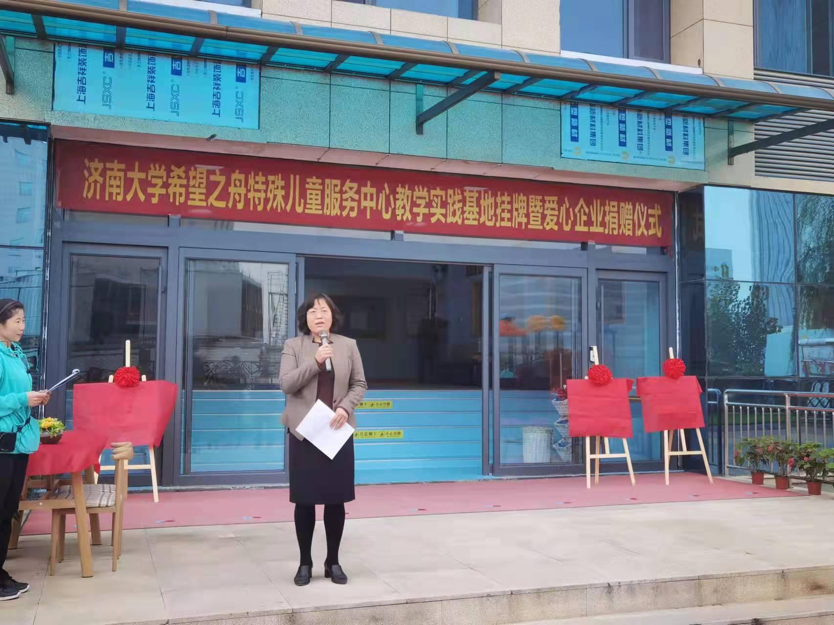 10月21日,学院与济南市希望之舟特殊儿童服务中心实践教学基地、学生社会实践基地签约挂牌仪式在济南市希望之周特殊儿童服务中心举行。学院副院长陈功香、副院长李开云、特教系系主任宿淑华教授出席,仪式由济南市希望之舟特殊儿童服务中心刘凤华董事长主持。