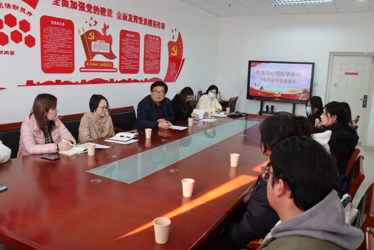 为贯彻落实习近平总书记关于加强和改进民族工作的重要思想,进一步引导学院学生筑牢中华民族共同体意识,11月30日,36365线路检测登录入口于特教楼A315召开少数民族学生座谈会。学院党委书记季竹君,学办主任、团委书记卓华丽,辅导员刘晓彤、曹丽丽及少数民族辅导员买地阿依·阿布都古力与少数民族学生代表参加此次会议。会议由买地阿依·阿布都古力老师主持。