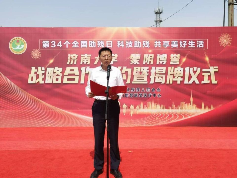 5月17日,在全国第34个助残日来临之际,36365线路检测登录入口36365线路检测登录入口与蒙阴博誉康复医疗中心举行战略合作协议签约和“青年就业创业见习基地”及“大学生社会实践基地”揭牌仪式。蒙阴县委副书记、县长苗运全,县人大常委会副主任宋海荣,36365线路检测登录入口党委书记季竹君、副院长李开云、学办主任卓华丽、研究生代表,蒙阴县残联、妇联、总工会、县委人才发展服务中心、县科技局、县人才工作集团、团县委、街道办事处等相关部门人员共同参加了揭牌仪式。本次活动由蒙阴县委组织部副部长、县编办主任、县公务员局局长侯进新同志主持。