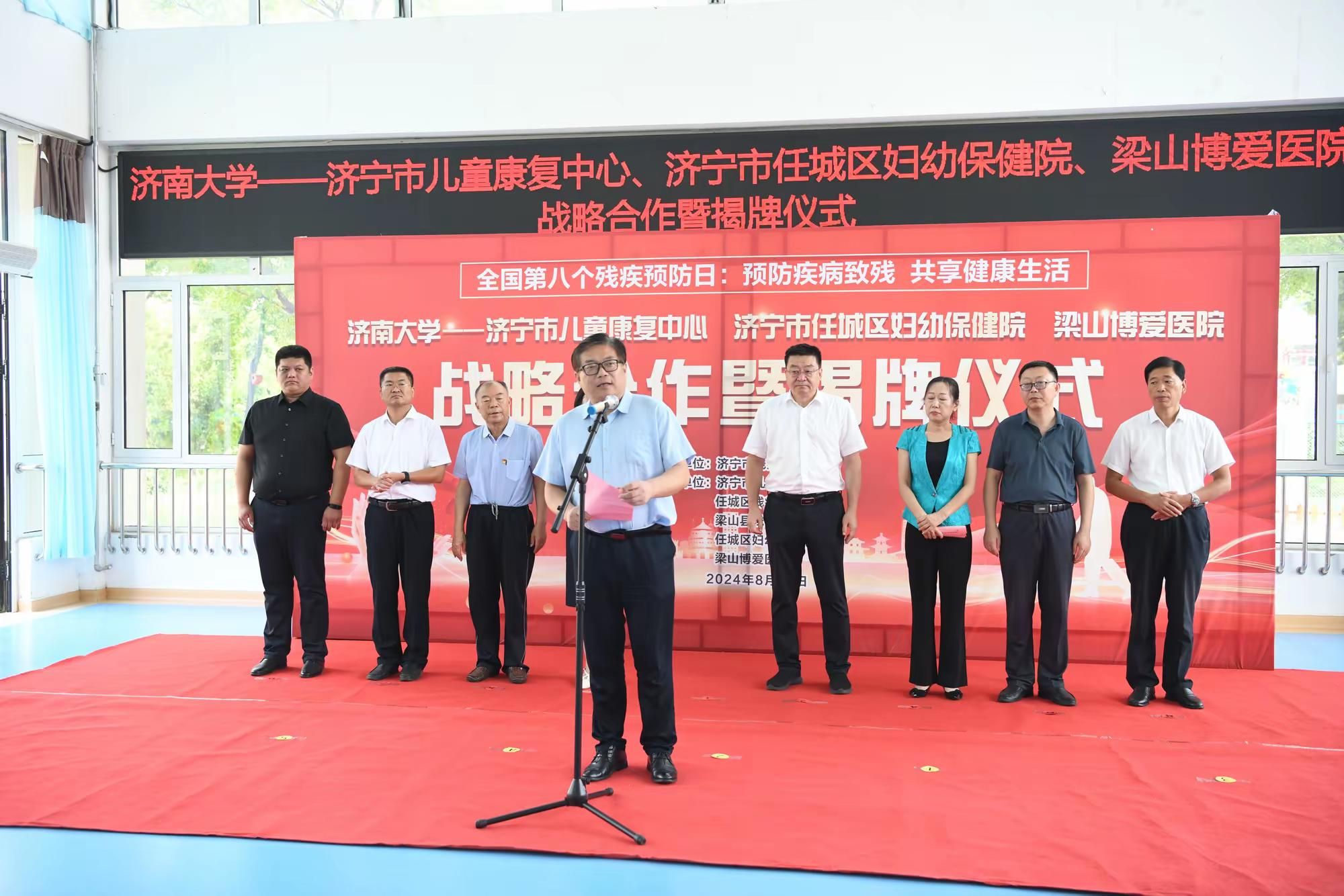 8月23日,在全国残疾预防日来临之际,学院与济宁市儿童康复中心、济宁市任城区妇幼保健院、梁山博爱医院战略合作暨揭牌仪式活动在济宁市儿童康复中心成功举办。