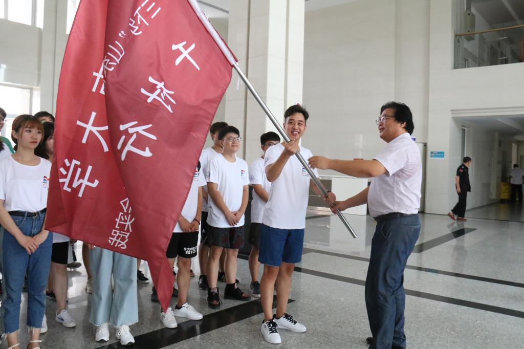 出征仪式仪式伊始,魏文静老师向同学们提出四点建议:一是课程安排。各支队伍针对所去实践地点做好规划,确保社会实践活动有序开展。二是注意安全。安全是一切活动的根本,社会实践中的饮食安全、交通安全以及出行过程中的各种安全应着重引起大家重视。三是注意宣传工作。宣传工作要提高效率和质量,反映活动进展,打造教心名片。四是提升自身发展。此次社会实践活动作为一次锻炼机会,尽最大程度提升自我发展空间。紧接着,卓华丽老师进一步强调社会实践过程中需要注意的问题,并提出自己的建议。最后,季竹君老师向团队代表授予“三下乡”旗帜,并代表学院向参与社会实践的同学表达美好的祝愿,希望此次实践活动圆满完成,同学们在实践活动中有所收获,有所提升。