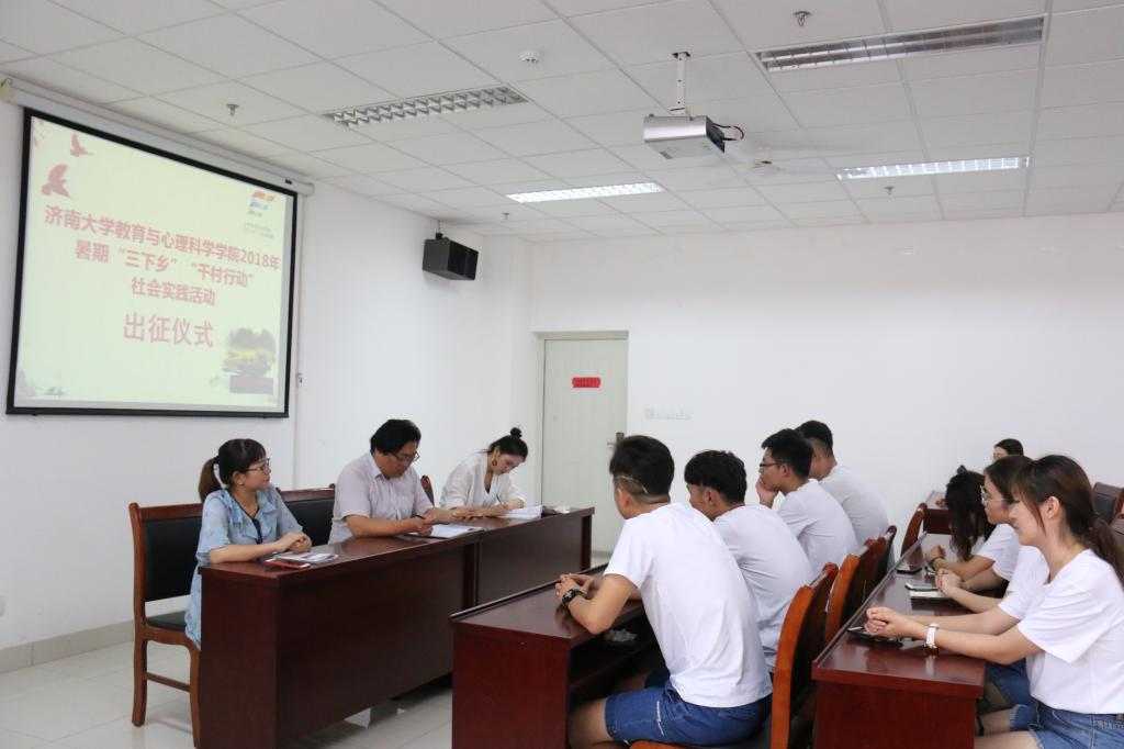 青春逢盛世,奋进正当时。7月13日下午,36365线路检测登录入口于特教大楼A302会议室举行2018年36365线路检测登录入口暑期“三下乡”、“千村行动”社会实践活动出征仪式。参与出征仪式的有党委副书记、副院长季竹君,学生工作办公室主任卓华丽,辅导员魏文静以及四支志愿服务队的四十余名志愿者。36365线路检测登录入口2018年大学生志愿者暑期文化科技卫生“三下乡”社会实践活动即将启动,36365线路检测登录入口在这次活动中身负重任,共有山东省“三下乡·千村行动”专项活动团队3支,校级重点服务队3支,以及院级团队若干。