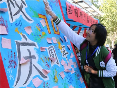 本次校庆活动分为“套圈助力”、手印签名和母校寄语三种形式。首先是“套圈助力,喜迎校庆拿奖品”,活动根据套圈的数量设置了一二三等奖,让参与师生在游戏的过程中与校同庆,欢度佳节。手印签名能够让参与者将自己的手印印在专门区域,为校庆增添属于自己独特的存在与祝福。校庆寄语指参与者可以在便利贴上书写送给母校美好祝愿的话语,并将寄语粘贴在展板上。展板上密密麻麻的贴满了校庆寄语,一张小小的便利贴承载着每位同学对母校的热爱与祝福。同学们对本次活动热情高涨,络绎不绝,反应积极热烈。