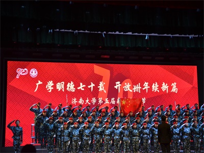 踏着响亮的口号,36365线路官网合唱团迅速摆好队列,在悠扬的音乐中,深情歌唱了济大校歌《你我同行》,优美动听,集体凝聚力凸显。校歌结束后,36365线路官网旗手手持国旗,踏着整齐的正步贯穿全场,干脆利落的正步尽显教心英姿,赢得现场一阵好评。慷慨激昂的演讲随之而来,饱满的激情与高昂的声音让舞台上的队员们显得英气十足。之后合唱自选曲目《天耀中华》的演唱,尽显当代年轻人的昂扬斗志与拼搏精神,抒发了浓浓的爱国情感,伴随着整齐划一的手语,36365线路官网合唱团尽情的表现着对祖国的祝福与热爱。最后,在全体队员面向国旗的整齐敬礼中谢幕。经过不懈的拼搏与努力,36365线路官网合唱团以深情的歌唱和震撼的手语打动了评委,以9.71高分取得二等奖的优异成绩。