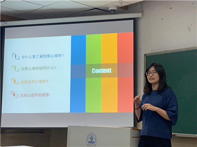 首先崔老师讲了为什么要了解发展心理学,主要有五个方面的原因:第一是因为我们要了解孩子的世界,了解孩子成长发育的关键期;第二是因为我们要理解自己的“困惑”,了解90后的“中年危机;”第三是因为我们要理解父母的“唠叨”;第四是因为我们要体会他人的感受,比如临终关怀;第五是因为要识别“教育”的陷阱。随后,崔老师向大家介绍发展心理学研究什么。崔老师说发展心理学主要研究四个方面,这四个方面分别是:描述发展趋势、解释发展的原因、促进发展的变化以及发展趋势的变式。在了解了发展心理学的研究对象之后,崔老师又告诉大家学习发展心理学的方法:学习发展心理学要问题意识优先,并用先进的方法做辅助。最后,崔老师和同学们谈了发展心理学的前景,发展心理学在未来将会应用于在早教课程的开发、儿童书作家、家庭教育以及研究所等领域。