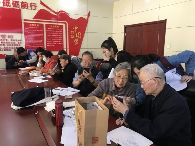 活动开始,老人们看到志愿者们十分开心,迫不及待地展示自己上一周学习的成果,也提出了一些新的疑问。志愿者们便顺水推舟,延伸出了本次活动的内容,以上一次学习的内容作为基础,这次老人们需要学习的内容是与好友互动聊天和公众号的订阅或取消。为了帮助老人直观地了解学习内容,志愿者们通过播放PPT来展示具体的操作步骤。虽然PPT内容丰富充实,但理论和现实还是存在一定差距。之后志愿者们便一对一地与老人进行互动,让老人们更加清楚的学习使用手机,其间,志愿者们每一个人躬身力行,这一举动不仅温暖了老人们的心,也让老人们感受到志愿者们的诚意,在志愿者们耐心地讲解和细心的指导下,老人们也逐渐地掌握了本次学习的内容。