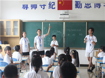 7月16日下午,志愿者们带领孩子们进行了一些心理小游戏,首先我们让孩子们根据学习、生活中的一些不偷快的事件,创设一个矛盾情境,让学生扮演矛盾的双方,之后,让他们互换一角色表演。小学生遇到事情总是本能地从自己的角度去想问题,不会替别人着想,因此常常引起矛盾纠纷。这个游戏旨在培养学生换位思考的意识,认识到矛盾冲突的原因,养成与别人友好相处的良好习惯。另外志愿者们又带领孩子们进行了“我来夸夸你”的心理小游戏,让孩子们虚心地听其他同学对其进行夸奖与赞扬。也耐心的去发现别人的优点,去夸赞别人。通过这个游戏,提高了自卑同学的自信心,也可以让同学们体验到被肯定的满足感。