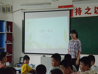 上课前一天,志愿者们在张集镇政府张书记的帮助下,得到了张集镇最新的宣传资料。另外,志愿者们还通过网络,搜集单县的历史、名胜、名人等资料,制作成PPT——“传统文化课之印象·家乡”。虽然孩子们大多生于本地,却对于这个地方的历史文化不太了解。因此,孩子们对于自己家乡的话题非常感兴趣,在课堂上认真听课,积极发言,课堂氛围非常融洽、活跃,这在一定程度上也给了志愿者们极大的鼓舞。在志愿者们的循循善诱下,孩子们不但对于单县的历史文化有了一定的了解,还通过善卷、秦纮人物的故事明白了要好好学习,立志立智,将来成为像他们一样优秀的人才。