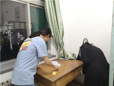 晚上7点半,学生会干部参与人员在相应的学生宿舍楼下集合。在宿管部的安排下,发放完宿舍钥匙及物资后,同学们便进入新生宿舍进行打扫。同学们首先将宿舍里的灰尘和之前遗留下来的垃圾打扫干净,用抹布擦干净了室内的各个橱柜和桌椅,并且检查了电灯、风扇等基础器具是否能正常使用。随后,同学们将新生的名字贴至对应的床号,为使新生找到自己的床位提供了最大的便利。最后,同学们又检查了宿舍的钥匙是否能正常使用后,便结束了本次清扫活动。