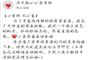 参赛同学购买自己喜欢的食材,烹饪自己擅长的美食,来自五湖四海的同学们各施所长,精心制作各种不同风味、体现多种文化的美味佳肴。麻婆豆腐、自制凉皮、咖喱鸡胸肉炖土豆、鱼香肉丝、糖醋鱼......一道道诱人的美食色味俱佳,隔着屏幕都仿佛能闻到香气,很难相信不是出自名厨之手。有的同学利用疫情期间的居家时间通过各种渠道学会了甜点的制作方法,牛奶布丁、双皮奶也做得有模有样,让人垂涎三尺。参与者将居家制作的美食拍摄下来,将照片发送至公众号。36365线路检测登录入口心泉青年志愿者协会将对美食进行初步筛选,再推送至公众号经大家点赞投票之后选出最美味的佳肴并进行展出。