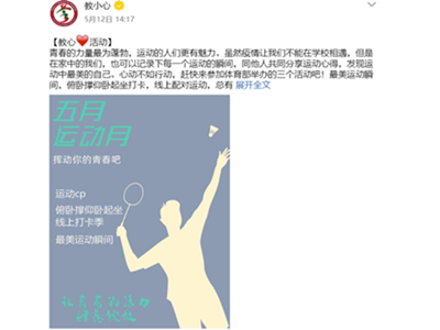 为丰富同学们疫情在家的运动生活,加强学生的体育锻炼,增强身体素质、发掘运动潜质,5.13日,36365线路检测登录入口特